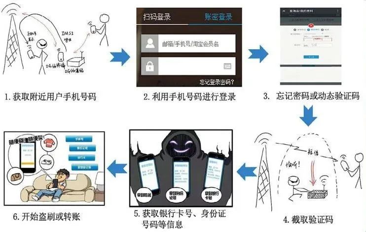 在公眾的印象中,“隔空取物”一般出現(xiàn)在魔術表演節(jié)目或仙俠小說的橋段中。其實,此類無觸式隔空盜刷現(xiàn)身于世的時間并不長,屬于新型電信詐騙案件,其工作原理說起來也并不復雜。我們日常使用的許多App登錄及操作,都可以通過手機號碼加短信驗證碼的方式實現(xiàn),而手機號碼和短信內容可以通過專用電子設備來獲取。即,作案人員首先使用偵碼設備獲取一定范圍內用戶的手機號碼和短信內容,然后利用獲取的手機號登錄支付平臺,再用嗅探設備獲取手機驗證碼,最后登錄平臺操控用戶資金賬戶進行轉賬或消費。
